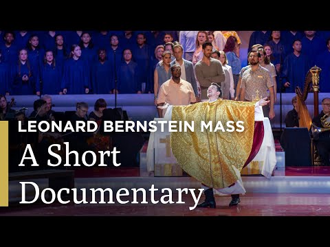 The ceremony is performed by a Celebrant accompanied by a formal choir, a boys’ choir, acolytes, and musicians. His congregation of disaffected youths (the “Street Chorus”) sings the questioning texts that challenge the formal ecclesiastic dogma of the Church. Ultimately, Mass serves as a reaffirmation of faith and hope for universal peace. It begins and ends with the sublime “A Simple Song,” an affirmation of the pure faith at the heart of the mass. (Bernstein had originally written the song for Franco Zeffirelli’s film Brother Sun, Sister Moon before withdrawing from the project.)