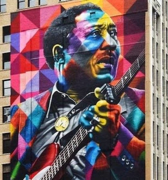 A nine-storey mural depicting blues giant Muddy Waters has been unveiled in Chicago, as part of the Chicago Blues Festival.