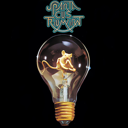 This 1975 Triumvirat album cover was a bit of a surprise, but a memorable one. Spartacus was a true concept album, but the cover didn’t relate to the concept. Instead, Triumvirat’s art director Roman Rybnikar carried over the band’s white-rat mascot, which first appeared on their previous album Illusions on a Double Dimple. This time the rat was placed inside a light bulb, appearing to pull a lever, that was meant to show the band was a wellspring of ideas.